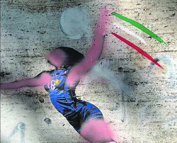 L’opera della street artist romana Laika, realizzata sul muro di fronte la sede delle Federazioni a Roma, è stata vandalizzata con vernice rosa a coprire la pelle della campionessa italiana.
