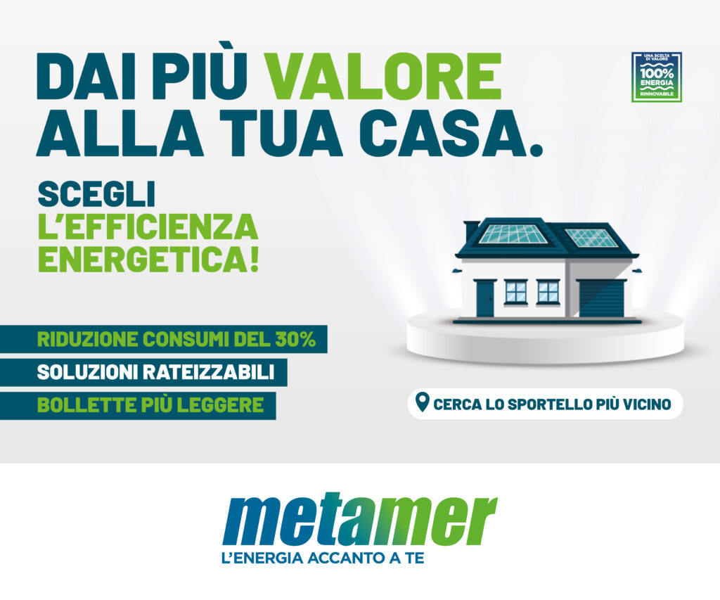Oggi fare delle scelte più sostenibili non solo è possibile ma indispensabile per garantirci un futuro migliore. È importante, però, rivolgersi ad aziende specializzate e consolidate che operano in maniera responsabile, come Metamer, leader in Abruzzo e Molise nella vendita di gas, luce e altre soluzioni di efficienza energetica che già dal 2020 sceglie solo fonti rinnovabili certificate per le forniture domestiche senza costi aggiuntivi, contribuendo alla riduzione delle emissioni di CO₂ e all’utilizzo responsabile delle risorse naturali.
