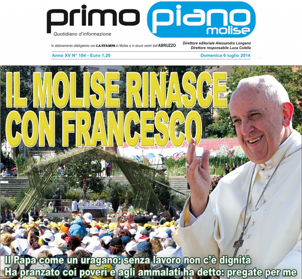 Mi piace paragonare Primo Piano Molise ad una catena, dove ogni anello è importante tanto quanto quello che lo precede e quello che lo segue. Mi piace, allo stesso modo, ricordare – per tutti i dieci anni trascorsi – due particolari eventi che hanno segnato la vita professionale di ognuno di noi. Due avvenimenti per i quali c’abbiamo messo cuore e anima: nel 2012 in occasione dei dieci anni del sisma di San Giuliano di Puglia e nel 2014 quando papa Francesco ha visitato il Molise. Il terremoto lo abbiamo ricordato con uno speciale di 12 pagine aperto da un fondo a firma di Guido Bertolaso. Per la visita del Papa siamo stati addirittura ‘costretti’, fatto mai avvenuto prima, ad una ristampa dell’edizione del 6 luglio. Due accadimenti che, insieme a tanti altri, hanno plasmato ancor di più una squadra fatta di persone, uomini e donne, prima ancora che giornalisti. A loro dico grazie. Li abbraccio con fraterno amore e infinita stima, uno ad uno.