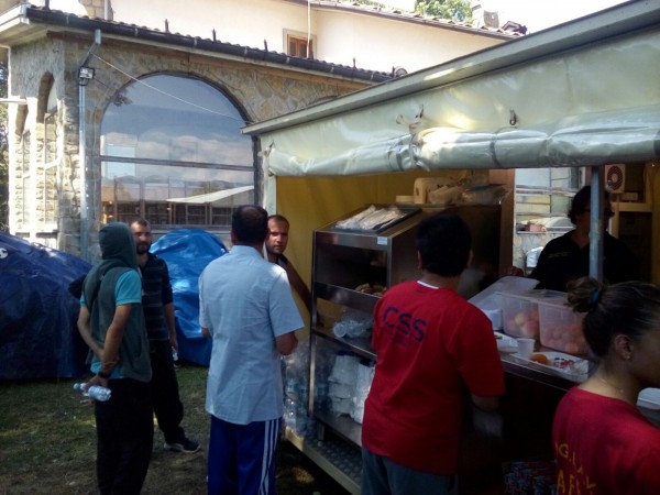 “La popolazione è abituata ad una vita tranquilla, molti vivono di agricoltura. È molto difficile convincerli a spostarsi nel campo che abbiamo allestito. Non vogliono staccarsi dalle loro case, anche se sono lesionate o hanno paura a rientrarvi. E poi – prosegue il funzionario della Protezione civile molisana – c’è il timore degli sciacalli. Ce ne sono tanti, le forze dell’ordine sono costantemente in azione su questo fronte. Anche nel nostro campo stanno eseguendo controlli giorno e notte, evidentemente alla ricerca di qualcuno”. Nel campo Molise, dunque, non dormono in tanti: 20, 30, 40 persone al massimo in questi primi giorni di operatività del sito. Anche se di posti ve ne sono molti di più. Ospiti del campo anche 40 Vigili del fuoco. “Siamo però diventati un riferimento per gli abitanti sopravvissuti, qui vengono a mangiare il giorno e la sera. Consumano qui i pasti oppure li portano via. Ne abbiamo distribuiti finora almeno 200 al giorno, fra residenti e volontari”. Come altri soccorritori e operatori di Protezione civile, anche Del Gesso dice: “Mai vista una cosa del genere. Ad Arischia e poi a Medolla abbiamo avuto meno difficoltà ad assistere concretamente gli sfollati. Qui, come dicevo, non ne vogliono sapere di spostarsi da vicino casa loro. Vengono al campo, ci pregano di portare le tende dove abitano e montargliele lì. A noi si stringe il cuore perché si mettono a piangere, sono disperati quando ce lo chiedono”. Ma le indicazioni nazionali sono altre e sarebbe impossibile assistere efficacemente in questo modo tutti i sopravvissuti.