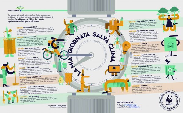 È iniziato ufficialmente il conto alla rovescia per il più grande evento globale dedicato alla sfida contro i cambiamenti climatici – Earth Hour / Ora della Terra del Wwf – in programma il prossimo 24 marzo e che quest’anno celebra 11 anni dalla sua prima edizione del 2007 svoltasi a Sidney. L’invito è quello di spegnere simbolicamente per un’ora, dalle 20.30 di ciascun Paese, le luci in casa,