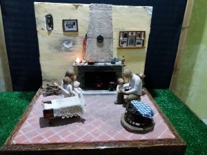 Il secondo, dal titolo “La famiglia-il focolare”, rappresenta appunto una famiglia, la mia famiglia, riunita nel salone, attorno al camino, durante le feste».