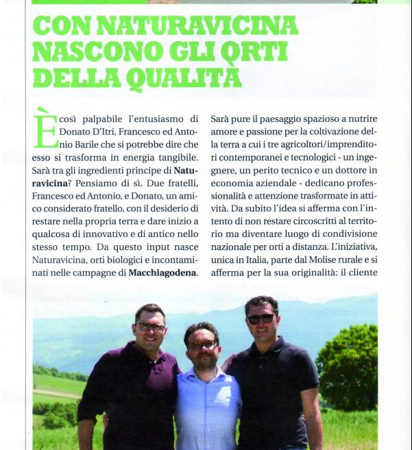 Nuova vetrina nazionale per il Molise e le sue tipicità, grazie alla guida pubblicata da ‘La Repubblica’ in edicola da ieri. Ampio spazio è stato riservato agli orti della qualità di ‘Naturavicina’. Orti biologici e incontaminati che hanno preso vita nelle campagne di Macchiagodena, grazie al progetto di Donato D’Itri insieme ai fratelli Francesco e Antonio Barile, nato dal desiderio di restare nella propria terra e dare inizio «a qualcosa di innovativo e di antico nello stesso tempo». Un’iniziativa unica in Italia che parte proprio dal Molise per affermarsi grazie alla sua originalità. Funziona così: «Il cliente – viene spiegato nella guida – decide su una piattaforma digitale la quantità di prodotto, che cosa acquistare, ma anche i metri quadri di orto di cui diventare proprietario a