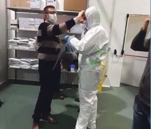 Il 39enne è infermiere di sala operatoria. Mansione in cui è fondamentale la vestizione. Nel trattamento dei ‘covid’ lo è ancora di più la svestizione, quando si esce dal reparto e dal contatto quindi con pazienti contagiati si deve curare ogni minimo dettaglio per evitare di toccarsi in maniera non protetta anche solo per un attimo. Prima di far prendere servizio agli infermieri in Fiera, una specifica ‘lezione’ ha riguardato proprio le operazioni di vestizione e svestizione.