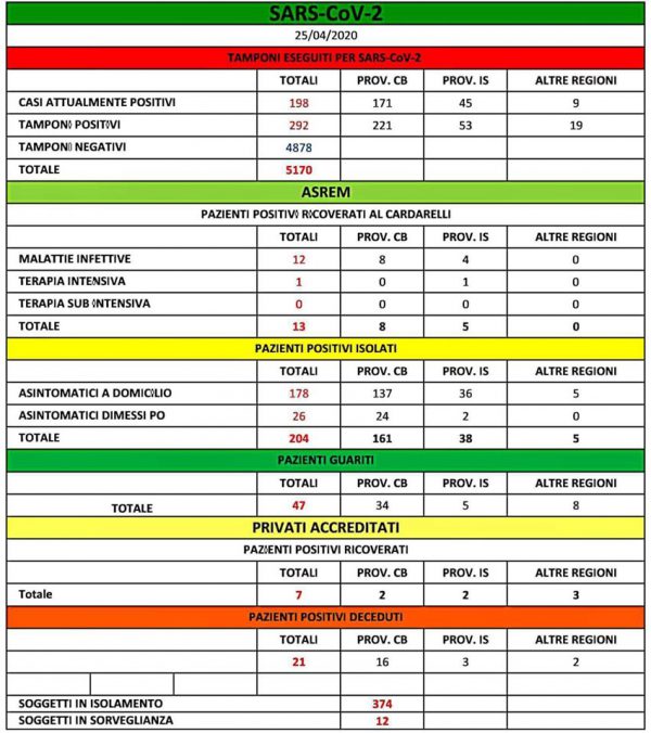 Altri tre i contagi da coronavirus diagnosticati ieri in Molise: a Campobasso, Termoli e Montenero di Bisaccia. Cluster individuati e noti, dicono da via Petrella.