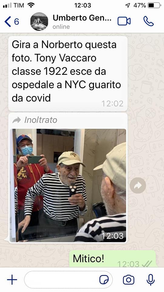 È una bella notizia in assoluto perché quanto sia subdola e pesante la malattia che abbiamo imparato a chiamare Covid-19 ormai lo sappiamo benissimo. E così ieri lo storico molisano Norberto Lombardi ha scoperto che Tony Vaccaro – uno dei più grandi fotografi al mondo originario di Bonefro – ha sconfitto il coronavirus. Su whatsapp il messaggio di un amico che ha fatto da intermediario: Umberto Gentiloni, docente della Sapienza ed editorialista di Repubblica, gli ‘mandava a dire’ che Vaccaro, classe 1922, è uscito da un ospedale di New York, guarito dal Covid. Lombardi ha condiviso su Facebook la notizia e lo screenshot da cui abbiamo tratto la fotografia.