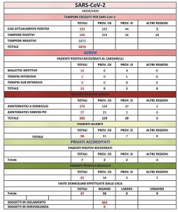 Infine, 352 i soggetti in isolamento e 9 quelli in sorveglianza.