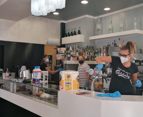 Particolarmente complesso il discorso per la ristorazione: i clienti non possono indossare mascherine. E restano nel locale a lungo. Soprattutto nella prima fase, quindi, si consiglia di privilegiare spazi all’aperto (chi li ha). I ristoranti dovranno cambiare layout: fra i tavoli almeno 2 metri e durante il pasto va assicurata una distanza in grado di evitare la trasmissione di droplets e per contatto tra persone, anche inclusa la trasmissione indiretta tramite stoviglie e posate.