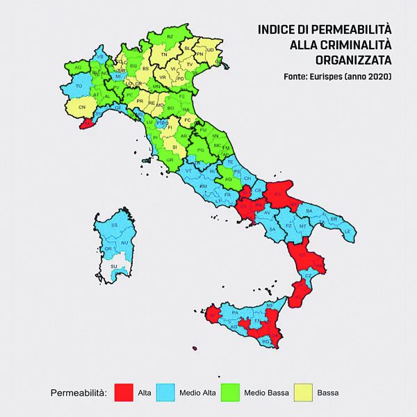 Sono i dati del rapporto 2020 sull’indice di permeabilità dei territori alla criminalità organizzata. Eurispes, sottolinea l’esponente 5s Vittorio Nola, «certifica quanto ho sempre denunciato nei mesi scorsi anche in qualità di presidente della Commissione speciale a carattere temporaneo di studio sul fenomeno della
