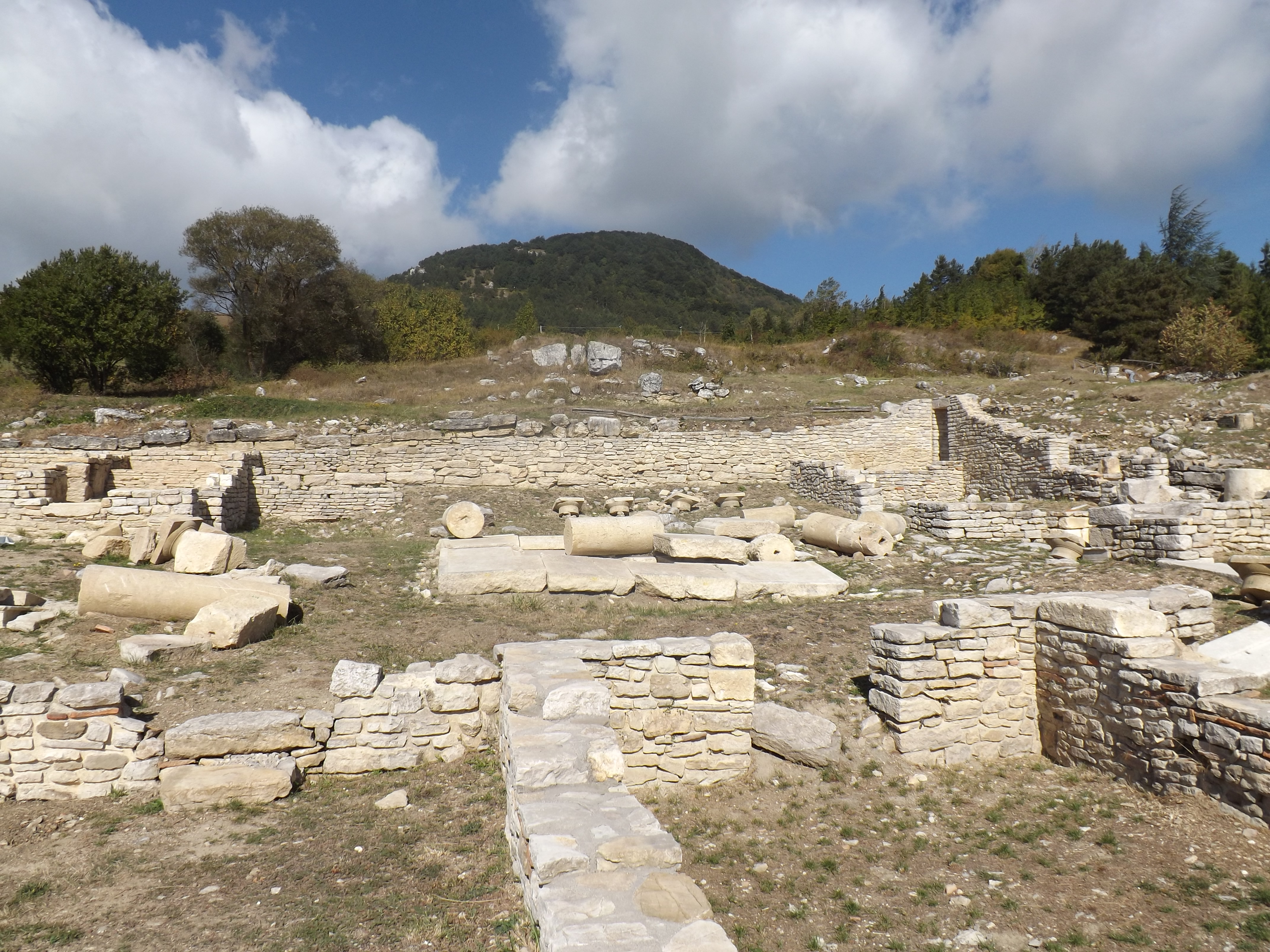 Il viaggio nel santuario sannitico di Pietrabbondante, accompagnati da un “Cicerone” d’eccezione, il professore Adriano La Regina – che dagli anni ’50 lavora su quello che si è rivelato essere il luogo istituzionale e religioso più importante della nazione sannita – comincia dalla domus pubblica, il grande edificio scoperto nel 2002 nella zona ovest del santuario. Entrarci adesso dà davvero l’idea di tornare nel II-I secolo a.C., quando era popolato di magistrati e sacerdoti. La domus, costruita secondo lo schema delle residenze aristocratiche romano-italiche, è una grande casa con impluvio ed ospita ambienti che a pensarci ora sono davvero esclusivi. Negli ultimi anni l’edificio è stato oggetto di restauro, che quest’estate, come ci mostra La Regina (presidente dell’istituto nazionale di archeologia e storia dell’arte di Roma, che ormai dell’area archeologica di Pietrabbondante conosce ogni minimo dettaglio) sono stati concentrati sul portico delle offerte votive.