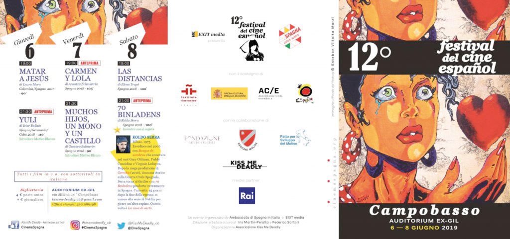 Oltre all’evento speciale di chiusura, il festival propone una selezione delle produzioni spagnole più significative dell’ultima stagione, come Carmen y Lola, fresco vincitore di due Premi Goya come Miglior Opera Prima e come Miglior attrice non protagonista, in uscita in Italia il 27 giugno; altro Premio Goya, vero e proprio caso cinematografico in Spagna e campione al box office, è l’esilarante Muchos hijos, un mono y un castillo (Molti figli, una scimmia e un castello), di Gustavo Salmeron; Las distancias opera seconda di Elena Trapé, trionfatrice al festival di Malaga 2018; Matar a Jesus dell’astro nascente del nuovo cinema colombiano, Laura Mora; e anche in anteprima Yuli, lungometraggio di Icíar Bollaín (Te doy mis ojos; También la lluvia; El olivo), vincitore premio al festival di San Sebastian come Miglior Sceneggiatura per Paul Laverty. Il film sarà distribuito in Italia da Exit Media.