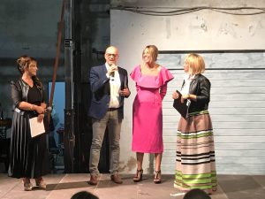 Sul palco, prima dell’inizio della sfilata, sono salite tutte le più importanti autorità che hanno contribuito alla realizzazione dell’evento. Prima fra tutte la preside del Pilla, Rossella Gianfagna in un abito fucsia ovviamente firmato Marcobologna, che ha sottolineato come per il quarto anno consecutivo l’istituto abbia dato anima e corpo per questo evento. «Questa è una scuola viva – ha proseguito Gianfagna – che permette di fare molte attività, è una vera e propria azienda».