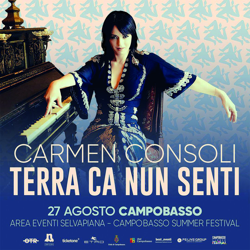 CARMEN CONSOLI. Soprannominata ‘la cantantessa’, la cantautrice siciliana è una delle più apprezzate e amate dal pubblico non solo in Italia. Con i suoi dischi ha scalato le classifiche e venduto milioni di copie. Ha ricevuto una Targa Tenco, due premi Lunezia, sette Italian Wind & Music A-wards, un Telegatto, un Nastro d’argento ( nel 2001, per il brano L’ultimo bacio, presente nel film omonimo di Gabriele Muccino), il premio Amnesty Italia ed è stata insignita con l’onorificenza di Cavaliere dell’Ordine al merito della Repubblica italiana. È stata la prima donna a vincere la Targa Tenco come miglior album. L’album Confusa e felice è stato inserito nella lista dei 100 migliori al-bum italiani secondo Rolling Stone, alla posizione 32. Ha partecipato più volte al Festival di Sanremo. Riscuote un discreto apprezzamento anche all’estero con tre concerti tutti esauriti nella città di New York, un’esibizione a Central Park, diverse tournée nelle maggiori capitali d’Europa e del Nord America. Nel 2015 è stata scelta da David Byrne come rappresentante per l’Italia al Meltdown Festival a Londra. Elvis Costello ha detto di lei: “Ha più idee originali lei in una manciata di pezzi piuttosto che alcune famose band inglesi o americane in un intero concerto”.