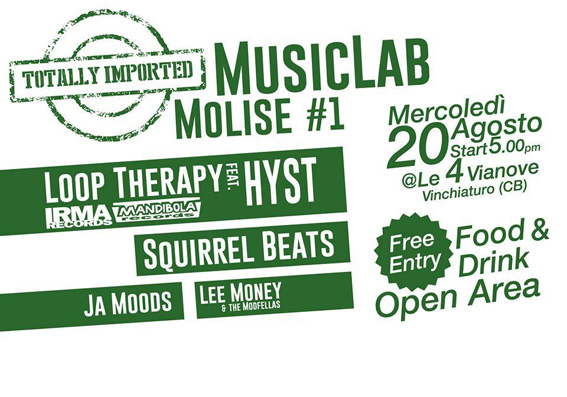 L’associazione Totally Imported si configura quindi come un nuovo canale di sperimentazione di generi musicali e di produzione di eventi, workshop e seminari. In quest’ottica, lo staff ha deciso di organizzare qui in Molise il “Music lab”, primo di una serie di eventi nazionali incentrati tanto sulla musica quanto sull’arricchimento e sulla valorizzazione culturale del territorio.