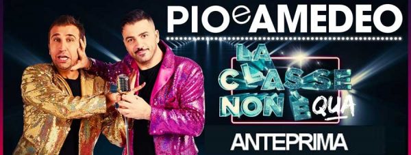 Sono di casa a Termoli, davvero. L’hanno citata in numerose occasioni, tra radio e tv, loro di Foggia, spesso ospiti della Cala Sveva. Stasera, dalle 21.30 al teatro Verde di Termoli, il duo comico dell’anno, Pio e Amedeo, debutteranno proprio dalla città adriatica col loro nuovo spettacolo, una sorta di numero zero d’eccezione. Pio e Amedeo, reduci dall’enorme successo di pubblico e critica per la loro partecipazione al Festival di Sanremo 69 e dopo oltre un anno dal tour “Tutto fa Broodway” che ha registrato il sold-out al botteghino in tutta Italia, andranno in scena per la loro prima volta sul palco dell’Arena di Verona, per il debutto del loro nuovo spettacolo “La classe non è qua”. Pio D’Antini e Amedeo Grieco, in arte Pio e Amedeo, è il duo comico nato agli inizi del 2000. Nel 2004 il duo debutta in televisione sulla rete locale pugliese Telefoggia con la trasmissione “Occhio di Bue” e successivamente arrivano a Radionorba e Telenorba. Dopo una piccola parentesi su Rai2, passano a Mediaset collaborando prima con il laboratorio di Zelig e debuttando poi con “Le Iene” programma che li ha portati al successo grazie ai personaggi degli “Ultras dei Vip”. Nel 2014 a dieci anni dal loro debutto, sono i protagonisti del road-movie “Amici come noi” prodotto da Taodue e distribuito da Medusa e sempre nello stesso anno recitano insieme a Vincenzo Salemme, Gigi Proietti e tanti altri nel film “E tu di che segno sei?” prodotto da Vanzina per la regia di Neri Parenti. Nel 2016 sbarcano con “Emigratis” in onda su Italia Uno arrivato alla terza edizione, dove Pio e Amedeo sono i protagonisti assoluti insieme ai vip che prendono di mira. Non solo cinema, televisione e teatro, ma anche radio: Pio e Amedeo hanno condotto su Rtl102,5 il programma del venerdì notte “A disposizione” e il live “Sala ricevimenti” oltre a molte dirette per eventi speciali. Nel 2018 il duo ha girato l’Italia con lo spettacolo “Tutto fa Broadway” registrando tutto esaurito e chiudendo con il loro debutto al Mediolanum Forum di Assago. Nel 2019 Pio e Amedeo salgono sul palco dell’Ariston come ospiti del sessantanovesimo Festival di Sanremo e subito dopo al programma di Mara De Filippi “C’è posta per te” coinvolgendo il campione Mario Balotelli in una gag in stile Emigratis. Sempre nel 2019 partecipano alla diciottesima edizione di Amici di Maria de Filippi registrando ascolti record.