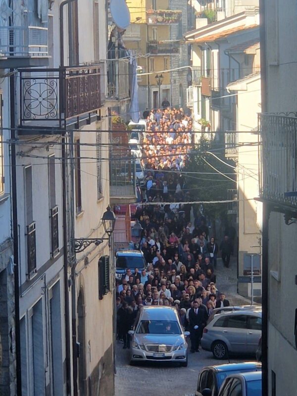Nei giorni precedenti l’addio, la casa funeraria è stata meta di un pellegrinaggio ininterrotto. Amici d’infanzia, compagni di scuola, colleghi di lavoro, semplici conoscenti: tutti hanno voluto lasciare un fiore, un pensiero, un ultimo saluto. Sui muri del paese sono apparsi manifesti a decine, forse centinaia. «Ciao Lino», «Non ti dimenticheremo mai», «Riposa in pace gigante buono». Una bacheca improvvisata di dolore e memoria che tappezza le pietre antiche del borgo, testimonianza visibile di quanto questo ragazzo fosse amato.
