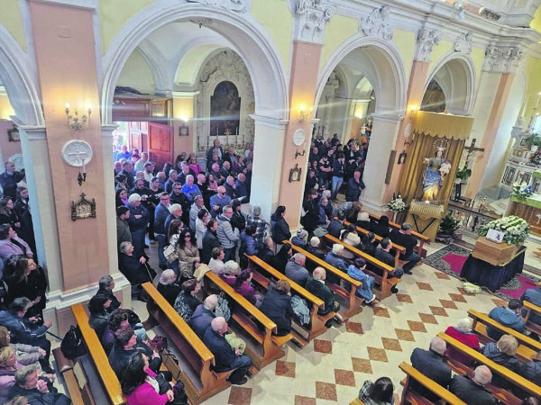 Quando don Paolo Del Papa ha iniziato a parlare, la sua voce tremava per l’emozione.«Un martire del lavoro», ha detto il parroco, scegliendo parole che pesano come macigni. «Un galantuomo che all’età di 26 anni, nel fiore della sua vita, ha deciso di coltivare la sua passione nella terra in cui è nato e voleva continuare a vivere». In prima fila, papà Domenico stringeva tra le mani un fazzoletto. Accanto a lui, le figlie Dina e Nadia distrutte dal dolore, annichilite da una sofferenza che nessuna parola può descrivere. Mamma Gina non era presente: troppo lancinante la ferita, troppo insostenibile trovarsi davanti a quella bara che conteneva il corpo di suo figlio.«Il dolore di questa famiglia», ha continuato don Paolo con voce rotta, «è come quello di Maria ai piedi della Croce. Un dolore che trafigge l’anima, che toglie il respiro, che sembra non lasciare spazio ad altro».