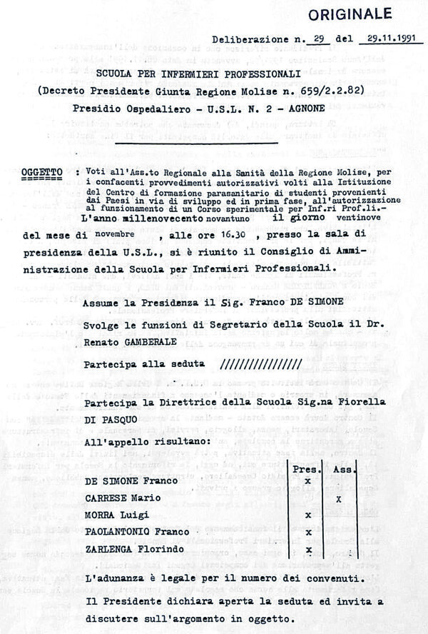 C’è stato un tempo, tra la fine degli anni ‘80 e gli inizi degli anni ‘90, in cui Agnone aveva già una sorta di università. Una sorta di triennale (non ancora esisteva questo termine), post-diploma capace di formare infermieri professionali – molti provenienti dall’Africa – e tecnici di Analisi e Radiografia, che oltre a dare respiro all’economia locale, fornivano supporto prezioso al presidio ospedaliero civile.