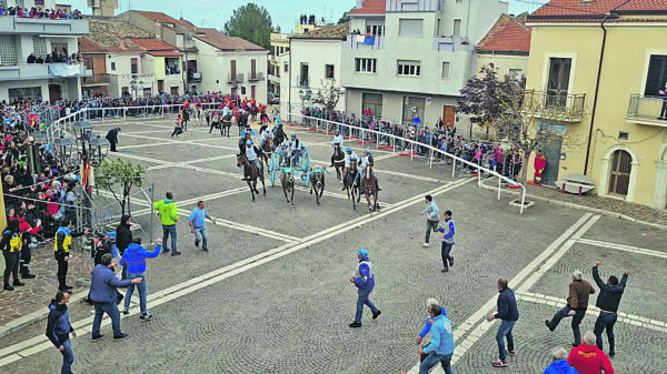 Dal momento di pace e condivisione, devozionalmente commovente, come la benedizione dei Carri, cavalieri e carristi, a opera di don Michele Di Legge, parroco di Ururi, alle contestazioni finite con la “carica” delle forze dell’ordine. Pomeriggio ad alto tasso adrenalinico quello di ieri a Ururi, dove è andata in scena l’edizione 2023 della Carrese. Una manifestazione vissuta sullo storico antagonismo tra giallorossi e biancocelesti, visto che la defezione dei Fedayn, non iscrittisi, ha lasciato sulla strada il duello lungo 3,3 chilometri tra Giovanotti e Giovani, questi ultimi vittoriosi nel 2022 ad avere la precedenza nell’ordine di partenza rispetto agli acerrimi rivali. Tanti i rappresentanti istituzionali presenti a Ururi, col basso Molise trasmigrato in massa per la seconda Carrese della stagione, dopo quella di San Martino in Pensilis. Poco prima delle 16.30 è stato dato il via, al termine della discesa dal paese, minuti febbrili vissuti dalle due opposte fazioni, che vedono la biforcazione del tracciato, tratto distintivo della Carrese di Ururi, che poi vanno a ricongiungersi, ma qui si è consumato un gesto che farò discutere a lungo: un cavaliere dei Giovani ha ostacolato il carro giallorosso, probabilmente rallentandolo quanto bastasse per evitare il sorpasso. Una corsa al cardiopalma, coi Giovanotti che non si sono arresi e hanno tallonato i Giovani, ma alla fine il successo è stato confermato dai colori biancocelesti, giunti per primi in piazza. Tuttavia, l’evoluzione della corsa e le polemiche sollevate, con un reclamo ufficiale, hanno provocato momenti di tensione, vero e proprio parapiglia, dove dalle parole si è passati ai fatti e allora Polizia e Carabinieri hanno dovuto giocoforza sedare gli animi bollenti, a passo di carica, bloccando l’accesso in piazza per i festeggiamenti, il tempo necessario di ripristinare la calma e far sgombrare carri e animali. La vittoria dei Giovani che all’apparenza era sembrata sub-judice, fino alla serata di ieri non è stata messa in discussione e la bandiera, vessillo simbolo del trionfo, era custodita saldamente nelle loro mani. Un copione molto simile a quello avvenuto nel 2022 e sempre con una vittoria contestata dei Giovani.