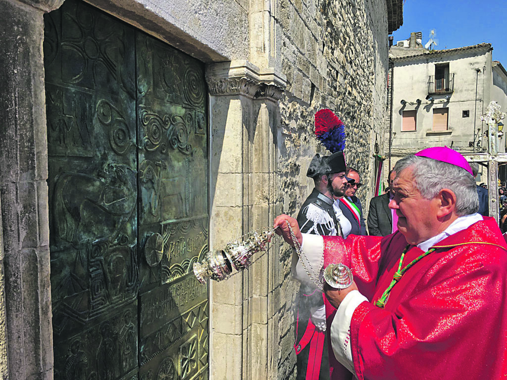 «La porta del perdono», è quella che è stata aperta ieri a Guardialfiera. Una Porta Santa: è possibile lucrare l’indulgenza plenaria nelle giornate del primo e del due giugno accostandosi al sacramento della riconciliazione e della comunione sacramentale. La solenne celebrazione eucaristica è stata presieduta dal vescovo Gianfranco De Luca alla presenza delle autorità e della comunità. Processione in onore di San Gaudenzio martire lungo le vie del paese. Gesti di amore, misericordia e devozione per continuare insieme il cammino verso Gesù (foto a cura di Nicola Trolio).