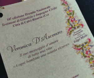 Sopravvissuta al crollo della scuola ‘Jovine’ di San Giuliano di Puglia, diventa maestra e testimone dell’importanza di scuole sicure in Italia: è Veronica D’Ascenzo che ha ricevuto il premio nazionale Testimoni di Giustizia e Impegno civile per «il suo messaggio d’amore di tutta una vita: ad ogni bambino una scuola sicura». Nel corso della manifestazione, ha incontrato anche don Antonio Coluccia, il prete che salva i bambini dalla droga nei quartieri malfamati delle periferie e vive sotto scorta da diversi anni. Sabato scorso, 3 giugno, alle ore 10.30, nella storica cattedrale romanica di Calvi Risorta, che dal 1995 si avvale della guida del sacerdote don Antonio Santillo, ha avuto luogo la X Edizione del “Premio Nazionale Testimoni di Giustizia e Impegno Civile–Città di Calvi Risorta”, struttura ospitante ricca di elementi storici, culturali ed artistici. Costruita alla fine del IX secolo con la navata centrale a doppio spiovente, attraverso i secoli ha subito vari rifacimenti per iniziativa dei vescovi che si sono succeduti alla guida della diocesi di Calvi. Tra di essi Giuseppe Maria Capece Zurlo, eletto successivamente Cardinale dell’Arcidiocesi di Napoli, fece realizzare due scale di marmo che