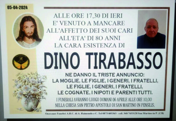 Bernardino Tirabasso, pensionato, era uscito al volante della sua Fiat Panda rossa, ma poi ha fatto perdere le sue tracce. Ad allarmare i familiari, oltre al fatto di non vederlo rincasare, anche il telefonino che aveva con sé che continuava a squillare a vuoto. Per questo, attese alcune ore dal momento dell’ultimo contatto, ne è stata denunciata la scomparsa e subito, con la cabina di regia prefettizia, sono partite le operazioni di ricerca, con forze dell’ordine e Vigili del fuoco, soprattutto nella zona prossima alla Bifernina, nei pressi del cosiddetto Ponte dello Sceriffo, vicino contrada Monte Arcano. Purtroppo, per lui non c’è stato più nulla da fare, l’80enne residente a San Martino in Pensilis è rimasto coinvolto in una uscita di strada che non gli ha dato scampo, la sua utilitaria si è ribaltata nei campi, finendo in un burrone per circa 40 metri. Le ricerche erano proseguite tutta la notte, dopo il via dato nella tarda serata di giovedì, ma è stato ritrovato poco dopo l’alba, intorno alle 7, proprio dalla squadra del 115. I soccorritori sono stati allertati da un passante che ieri mattina ha notato l’auto dell’uomo ribaltata in mezzo alla vegetazione. Prima di mettersi al volante per il tragitto fatale che il destino gli ha riservato era stato in un bar. Diversi i mezzi dei Vigili del fuoco di Campobasso e di Termoli e il nucleo Droni arrivato dall’Aquila. L’anziano era stato visto l’ultima volta a bordo della sua auto sulla strada provinciale in direzione di Larino, il mezzo era stato poi geolocalizzato tra la strada provinciale 80, tratto noto come ‘ponte dello sceriffo’, e San Martino in Pensilis. Accertata la morte da parte dei medici del 118 Molise, la salma è stata ricomposta in obitorio e dopo il nulla osta alla sepoltura, è stato restituito alla famiglia. Sull’incidente mortale indagano i Carabinieri della compagnia di Larino. I funerali avranno luogo stamani, alle ore 10 nella chiesa di San Pietro Apostolo di San Martino in Pensilis. Affranti ne danno l’annuncio la moglie, le figlie, i generi, i fratelli, le cognate, i nipoti e i parenti tutti.