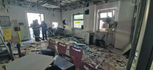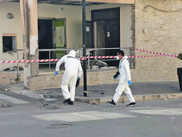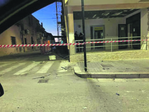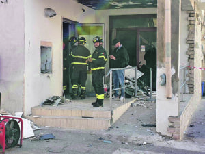 5.30 di ieri mattina ha svegliato diverse persone in paese, quando l’oscurità ancora non aveva lasciato posto all’alba. Deflagrazione che ha subito messo in allarme i militari dell’Arma dei Carabinieri, sia della locale stazione, che della compagnia frentana, accorsi assieme ai Vigili del fuoco del distaccamento di Santa Croce di Magliano. Probabilmente adottando la solita strategia della “marmotta”, il commando ha fatto saltare in aria la postazione di corso Umberto, cagionando danni ingenti alla struttura, valutati come rischio statico proprio dai pompieri. Lo stratagemma che serve per rendere inutilizzabili le banconote trafugate dopo l’esplosione, lo “schiumablock”, ha funzionato egregiamente, secondo quanto appreso dalle fonti investigative, ma alla serata di ieri non era ancora stato quantificato il bottino, poiché il postamat era stato