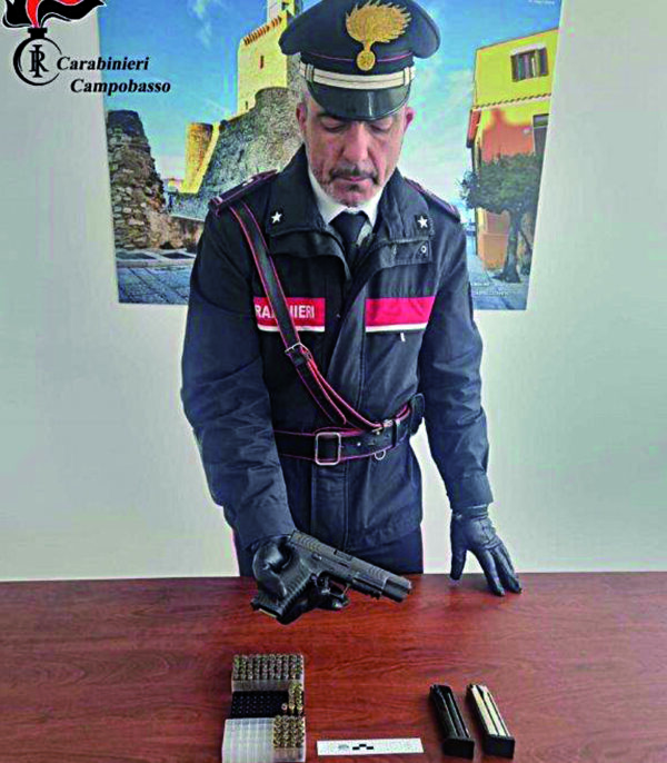 flagranza di reato un 35enne del luogo, già titolare di precedenti penali. Sul capo dello stesso pende l’accusa di detenzione illegale di arma comune da sparo e munizioni; reato previsto e punito dagli articoli 2 e 7 della Legge 895/1967. Durante le perquisizioni domiciliari d’iniziativa rinvenuta, ben occultata all’interno di un garage nella disponibilità dell’uomo, una pistola semiautomatica calibro 9×21 di fabbricazione croata perfettamente funzionante, munita di 2 caricatori e diversi accessori, nonché 81 cartucce di varie marche e del medesimo calibro. Quanto rinvenuto è stato pertanto sottoposto a sequestro penale, in attesa dei necessari accertamenti (in particolare sull’arma per appurarne l’effettiva provenienza) e del successivo deposito presso il competente Ufficio Corpi di Reato. Il 35enne, appurate le sue chiare responsabilità penali in merito a quanto acclarato, è stato tratto in arresto e tradotto presso la sua abitazione di residenza agli arresti domiciliari. Nella successiva udienza dinanzi alla competente Autorità Giudiziaria di Larino, l’arresto è stato opportunamente convalidato poiché legittimamente effettuato e, a carico dell’uomo, veniva confermata la misura degli arresti domiciliari.