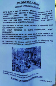 La comunità di Ururi è già in fibrillazione per la Carrese del 3 maggio. Tuttavia, dopo gli episodi degli ultimi anni, con ‘intemperanze’ fuori ordinanza da parte di alcuni appartenenti alle associazioni in gara, l’amministrazione comunale ha voluto mettere in sicurezza il percorso, prevedendo, per ora solo in un atto d’indirizzo, l’allargamento della strada, sacrificando alcuni platani. Progetto allo stato che resta sulla carta, in attesa di acquisire pareri e autorizzazioni. Tuttavia, è bastato questo per scatenare chi in paese ha additato a lesa maestà l’abbattimento degli alberi. Ieri mattina, almeno dieci sono stati i volantini disseminati in paese, circostanza che ovviamente ha creato molto scalpore, ma anche la reazione decisa della sindaca Laura Greco, che ha deciso di rivolgersi subito alle forze dell’odine, per denunciare l’accaduto e stimolare così indagini mirate a svelare gli autori dell’affronto, che si sono nascosti dietro la generica dizione di “cittadini di Ururi”, ma che potrebbero essere individuati attraverso i filmati delle telecamere di videosorveglianza, che chiaramente saranno consultate dai militari dell’Arma.