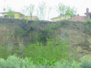 In termini estremamente semplici e per quanto ci interessa come cittadini residenti: il franamento del costone su cui sorge l’abitato è diretta conseguenza di ciò che avviene a valle, non ne è la causa. Il peso delle case sul costone non provoca la frana. La pericolosità di dette costruzioni, vecchie o nuove che siano, consiste esclusivamente nel rischio di essere trascinate a valle con tutto ciò che consegue.