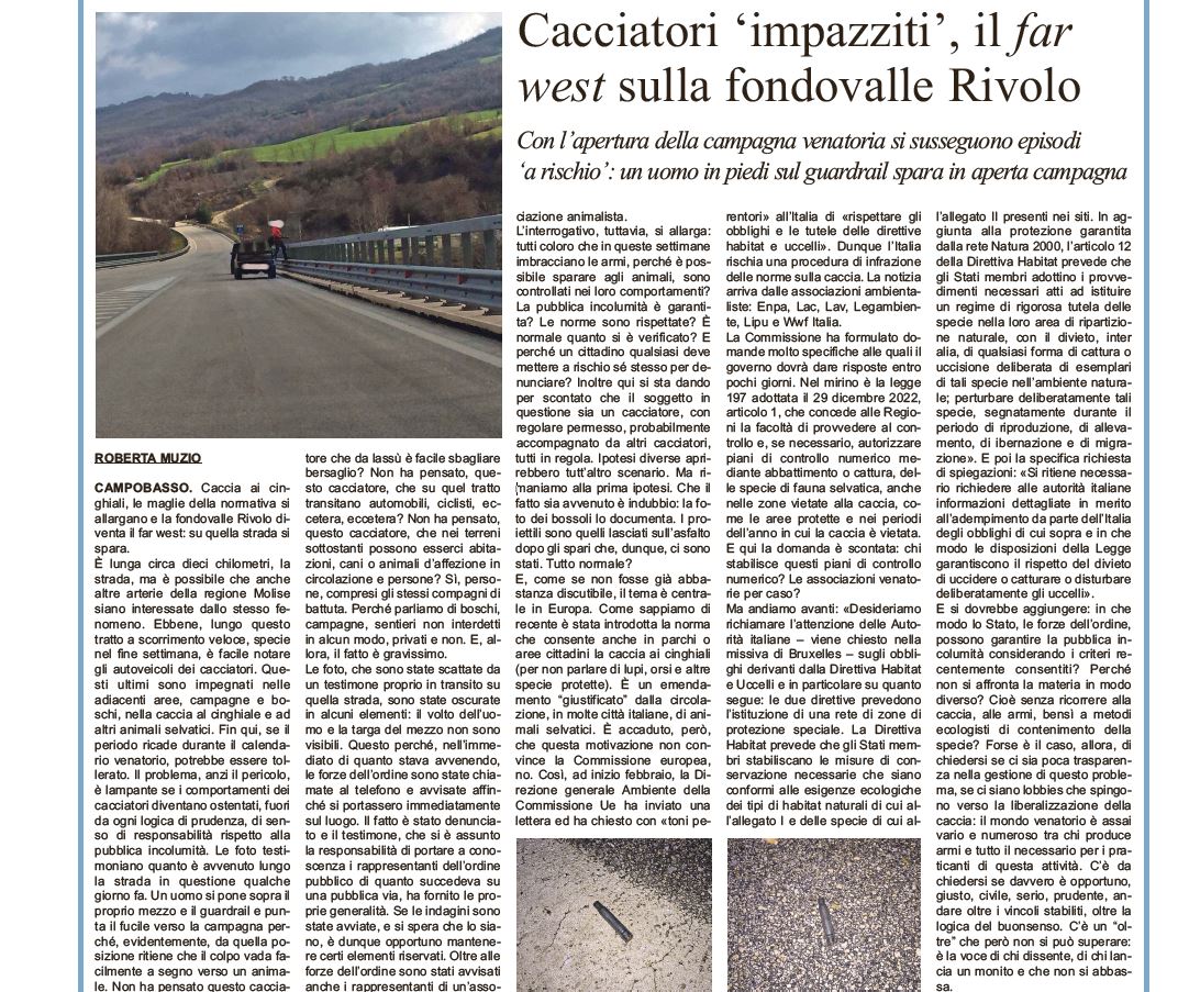 Caccia al cinghiale pericolosissima per la pubblica incolumità e affatto legale quella di cui, nello scorso mese di febbraio, Primo Piano ha dato notizia documentando con alcune foto gli atteggiamenti di un cacciatore che, in piedi sul guardrail della fondovalle Rivolo, indirizzava le canne del proprio fucile in aperta campagna con i rischi evidenti per chi, in quei momenti, magari era nel proprio podere a lavorare oppure stava facendo due passi all’aria aperta con il proprio cane al seguito.
