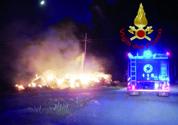 È divampato intorno alle 21:15 di venerdì sera il vasto incendio che ha colpito una zona agricola di Spinete, devastando circa 40 rotoballe di fieno. Immediato l’intervento