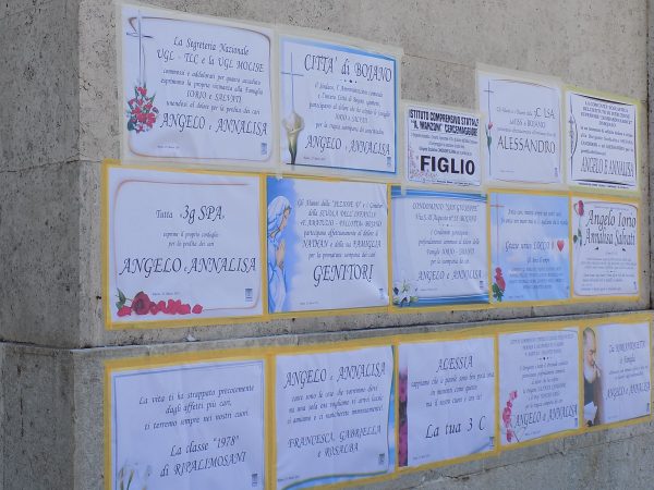 Il sacerdote al termine dell’omelia ha voluto lanciare un messaggio d’amore, sottolineando come la vita è un dono di Dio, della sua provvidenza, e che Angelo e Annalisa sono stati preziosi nella loro vita per tutti, e oggi lo sono ancora di più perché hanno insegnato con il loro sacrificio cosa significa vivere e vivere soprattutto la bellezza dell’amore. Straziante il dolore dei familiari e dei parenti tutti per l’improvvisa e tragica morte di questi giovani genitori che lasciano cinque figli, il più grande ha 17 anni, mentre la più piccola appena un anno e mezzo. Le due salme trasportate al cimitero cittadino saranno tumulate nella cappella di famiglia.