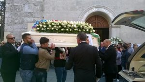 sorella morte che gli ha fatto sperimentare la durezza della vita. «Troppo giovane, troppo vivo, troppo sorridente, troppo affezionato agli amici e generoso nel costruire il suo futuro – ha aggiunto don Rocco -; solo Dio può accogliere la nostra rabbia per un perché che non trova risposta! Di fronte a queste domande insidiose e ribelli, nate dall’amarezza e dalla delusione, Gesù non indietreggia nei nostri confronti. l’Amore di Dio non si allontana dalla nostra vita, anche se in noi c’è l’amaro in bocca per una tragedia che non ci fa essere indifferenti. Cristo non ci spiega perché Gennaro è morto, ma non rimane a guardare. Lui è qui, vicino alla bara bianca. Gesù è nel dolore della madre, nello smarrimento del padre, nell’amarezza delle sorelle e nella delusione di tutti noi! Cristo non spiega, ma si cala nel buio delle nostre considerazioni sussurrandoci: Io sono la Risurrezione, la Vita, chi crede in me anche se morto vivrà». Don Rocco ha così concluso la sua omelia: «La giovane storia di Gennaro non morirà mai, il bello che ha costruito rimarrà per sempre nel cuore di ciascuno; il regalo più bello allora che noi possiamo fare a Gennaro è un cammino nuovo tra di noi, nell’amore, percorrendo la strada con Gesù». Al termine è intervenuto un compagno d’infanzia di Gennaro, Ferdinando che, a nome di tutti gli amici, l’ha voluto ricordare con semplici e toccanti parole uscite dal suo cuore, che hanno emozionato i presenti, come del resto anche la lettera dei colleghi universitari del corso infermieristico. All’uscita della bara dalla chiesa, questi ultimi hanno liberato in aria dei palloncini bianchi a forma di cuore, seguiti da un lungo e commosso applauso in memoria di un giovane che, come ha detto l’amico Ferdinando, tante madri sognerebbero di avere come figlio. La salma è stata poi trasportata al cimitero cittadino per la sepoltura. Intanto nella mattinata odierna, alle ore 11.00, presso la parrocchia dei Santi Erasmo e Martino si terranno i funerali dell’altra vittima dell’incidente, Antonio Angelini. Il nipote Simone, rimasto ferito gravemente nell’incidente, è tuttora ricoverato presso il reparto di Rianimazione in coma farmacologico, le sue condizioni sono stazionarie. L’augurio di un’intera città e non solo, è che possa guarire presto e tornare in piscina a gareggiare, essendo un promettente nuotatore tesserato con la società H2O di Campobasso. Nel contempo proseguono le indagini dei carabinieri della Radiomobile della Compagnia di Bojano per ricostruire l’esatta dinamica dell’incidente in cui sono state coinvolte tre macchine con un bilancio di due morti e cinque feriti di cui uno grave. Nel Salotto UMDI Turchese oggi pomeriggio, con inizio alle ore 18.00 a Palazzo Colagrosso, si parlerà di incubatore di talenti, l’evento sarà dedicato a Gennaro Caraviello, i cui sogni sono stati recisi in quel tragico incidente stradale.