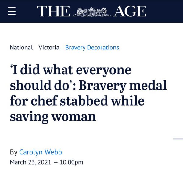 È proprio vero: non tutti gli eroi hanno il mantello. A quattro anni di distanza da un gesto più che eroico, il 28enne bojanese Luigi Spina è stato premiato dal governatore generale d’Australia, David Hurley, per aver salvato una donna a Melbourne da una tremenda aggressione in strada, mettendo letteralmente a repentaglio la sua stessa vita. Proprio ieri, subito dopo la consegna ‘virtuale’ della medaglia al coraggio, un riconoscimento che è avvenuto in videoconferenza insieme anche ad altri 110 destinatari del ‘Bravery Award’, anche un giornale online di Melbourne – il “The Age” – è tornato a sottolineare lo spessore e la