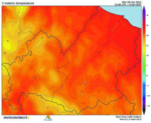 La nuova eccezionale ondata di caldo per il periodo ha iniziato ad estendersi verso l’Italia dopo aver portato il caldo record su Francia, Spagna e Inghilterra. Domenica sul Nord Italia le temperature hanno raggiunto picchi elevati per ottobre con punte di 32-34°C. I record del mese sono stati battuti a Piacenza, Torino, Bologna, Cuneo tanto per citarne alcuni. «Non si può parlare di ‘ottobrata’ – prosegue Nucera – perché questa si riferisce ad una fase stabile e con temperature miti ma di breve durata. Qui invece siamo di fronte proprio ad una situazione anomala, tipicamente estiva, sia per intensità che per durata. Le temperature sono anche superiori ai 10-12°C rispetto alle medie tipiche del periodo.