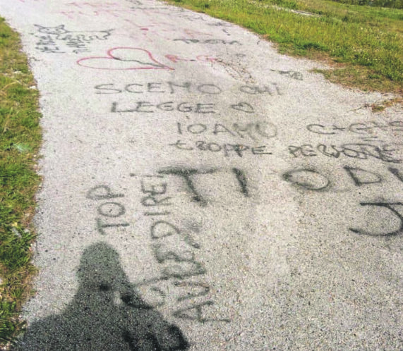 Dagli scarabocchi lungo il perimetro della struttura alle scritte sgrammaticate e blasfeme disegnate da writers improvvisati su muri e strade: a regnare è la totale mancanza di rispetto non solo nei confronti di un’area pubblica ma soprattutto di un luogo sacro ben lontano da certe esternazioni.