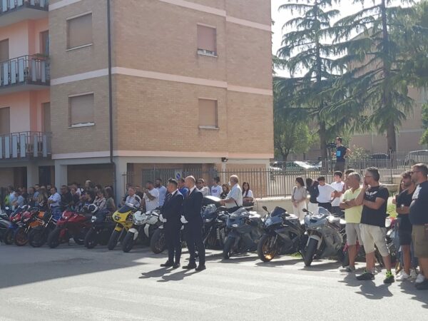 Le due ruote erano la sua passione. E ieri pomeriggio decine di centauri, compagni di tanti viaggi, lo hanno atteso sul sagrato della chiesa di San Giuseppe Artigiano, con i motori pronti a ‘rombare’ al suo arrivo. Un ultimo, straziante abbraccio, sulle note di Bob Dylan, quello che la