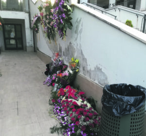 Se l’evento nefasto si verifica in una giornata prefestiva o festiva la situazione si complica ulteriormente, con gli istituti bancari chiusi. Il bello, per usare un paradosso, è che una volta che la salma è stata portata in obitorio, ai familiari non viene consentito di entrare. La camera mortuaria viene chiusa e sarà possibile “salutare” definitivamente il caro congiunto prima della tumulazione, solo un quarto d’ora antecedente questa ultima osservanza. Ovviamente con buona pace per quanti sono giunti in città all’ultimo momento e devono riprendere la strada del ritorno, senza aver potuto neppure toccare la bara. Ma c’è di più, e la cosa certamente è davvero sgradevole e sicuramente di pessimo gusto: il copri bara di fiori, che in genere, si fa confezionare dai parenti più prossimi all’estinto da un esercente, spendendo anche parecchio, non può essere più collocato sulla salma, ma va lasciato fuori dalla camera mortuaria, all’aria aperta e alla mercé di tutti, insieme agli altri fiori, corone, cuscini e realizzazioni varie. C’è solo da rivolgere vive preghiere al Signore affinché non faccia scendere precipitazioni di ogni genere, per evitare che il tutto si trasformi in una poltiglia di una indecenza indicibile, anche dal punto di vista sanitario, e non solo dell’immondizia e dell’estetica.