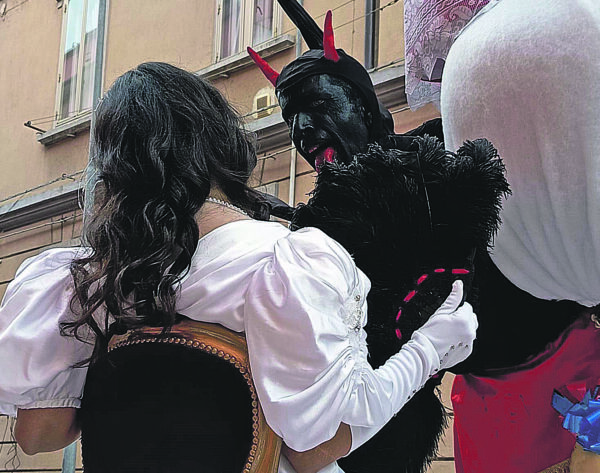 Dopo la benedizione i quadri viventi hanno dovuto accorciare il percorso a causa della pioggia costringendo i piccoli angeli e diavoli ad indossare l’impermeabile per proteggersi dal maltempo.