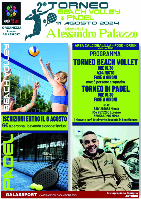 Quest’anno l’omaggio si protrarrà per l’intera giornata. Oltre al torneo di beach, che lo scorso anno ha visto in campo decine e decine di ragazzi e ragazze, si aggiunge alla seconda edizione anche il torneo di padel.