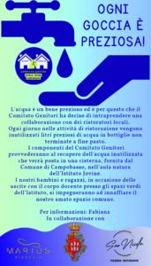 L’ultima in ordine di tempo – a ridosso della crisi idrica che sta attanagliando il territorio – si intitola “Ogni goccia è preziosa”, un’iniziativa che vede l’installazione di una cisterna fornita dal Comune e che punta a coinvolgere le attività locali. Il progetto si pone l’obiettivo di recuperare l’acqua fornita dalle attività di ristorazione da destinare poi all’irrigazione degli spazi verdi dell’istituto.