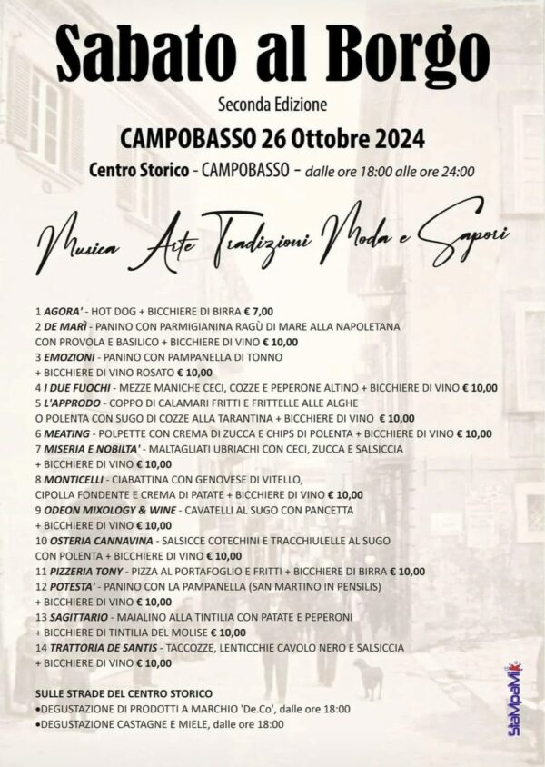 Vasta anche la proposta gastronomica, frutto di un lavoro di squadra tra commercianti, ristoratori e titolari di bar e pub «che finalmente sono tornati a fare rete», ha rimarcato l’assessore Trivisonno. «Ci sarà inoltre una degustazione di castagne e miele, settore quest’ultimo, duramente piegato dalla crisi climatica».