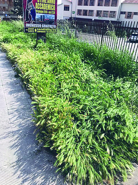 E davanti alle scuole la situazione non cambia: erba alta e rischi per la salute