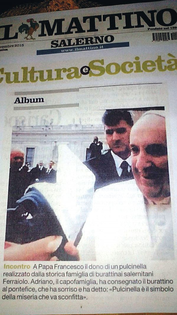 maestro attualmente vive a Salerno, sua città natale. Due dei suoi fratelli purtroppo sono scomparsi. È l’unico, insieme alla sorella Silvana e ai suoi due figli, Fabio e Simone, a portare avanti la tradizione. Negli anni il maestro è stato insignito di prestigiosi riconoscimenti: è infatti Cavaliere della Repubblica e Gran Ufficiale e lo scorso anno ha ricevuto il prestigioso Premio Charlot. Due anni fa ha incontrato Papa Francesco al quale è riuscito a strappare un sorriso omaggiandolo con il burattino di Pulcinella. Inoltre, grazie alla suo lavoro, è stato conferito della cittadinanza onoraria dai Comuni di Calvanico, Crotone, Eboli e, a breve, anche da quello di Battipaglia.