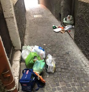 abitanti e soprattutto per chi lavora duramente per mantenere pulite le strade del capoluogo, una borsa frigo e varie buste cariche di immondizia per evitare il ‘duro’ compito di separare i rifiuti così come previsto dalla raccolta differenziata, servizio che nel centro storico è stato avviato ormai da quasi 3 anni.