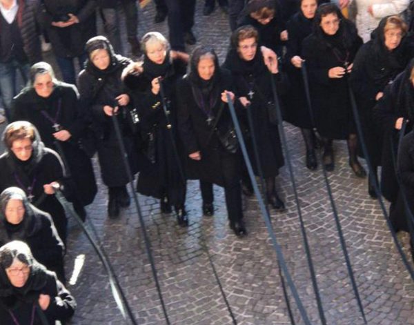 Grandi emozioni anche quest’anno per la consueta processione del Venerdì Santo. In migliaia, tra devoti, turisti e curiosi, si sono riversati ieri sera per le strade del centro cittadino per assistere al coinvolgente rito sacro. Centinaia, come sempre, i protagonisti del coro, rigorosamente vestiti a lutto, che accompagnano la statua dell’Addolorata e del Cristo morto per le vie del centro. La processione, come da tradizione, è partita intorno alle ore 18:00 dalla chiesa di santa Maria della Croce, nel borgo storico di Campobasso.