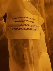 Prevedibili le reazioni dei cittadini. Molti, complice il buio, dal primo ‘impatto’ visivo hanno subito temuto il peggio. Poi, però, guardando bene, si sono resi conto che quella sagoma appesa ad una corda altro non era che un fantoccio riportante un messaggio piuttosto ‘criptico’: «Se volete mantenere pulito lasciateci scopare».