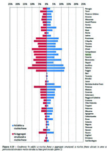 Il patrimonio immobiliare, ancora: relativamente agli edifici a rischio in aree a pericolosità da frana, in provincia di Isernia se ne contano 42mila 768, di questi 2mila 681 in aree a rischio molto elevato, 777 in area a rischio elevato, 1158 in aree a rischio medio, 708 in aree a rischio moderato. Sono 3mila 647 gli edifici a rischio in aree di attenzione, 3mila 458 in aree a pericolosità da frana elevata e molto elevata. Di conseguenza, l’8,1% degli edifici della provincia insiste su aree pericolose.