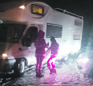 Polizia Stradale e Carabinieri hanno soccorso gli automobilisti, aiutandoli a montare le catene. I volontari della Croce rossa, arrivati sulla Statale con tre autovetture 4×4 e un’ambulanza, hanno raggiunto il valico di Castelpetroso e alcuni tratti della SS 650 Trignina, hanno distribuito coperte e bevande calde. «Restiamo in continuo contatto con forze dell’ordine, Protezione Civile e Vigili del fuoco per intervenire laddove ce ne fosse bisogno», ha dichiarato il presidente della Croce Rossa di Isernia, Fabio Rea.